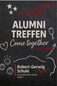 Freuen Sie sich am Samstag, 26.09.2026 ab 17 Uhr auf ein lockeres Meet & Great und einen lebendigen Austausch mit ehemaligen Lehrkräften und Schüler*innen aus Berufs- und Vollzeitschule.